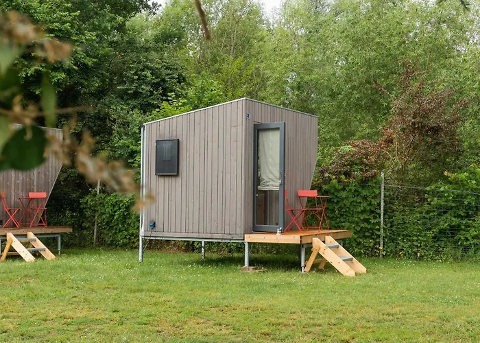Die 0-Zimmer- Sleep Space 1 - Green Tiny Spot Sudpfalz verfügt über eine Terrasse mit Blick auf den See und ist 43 Autominuten vom Flughafen Mannheim entfernt gelegen.